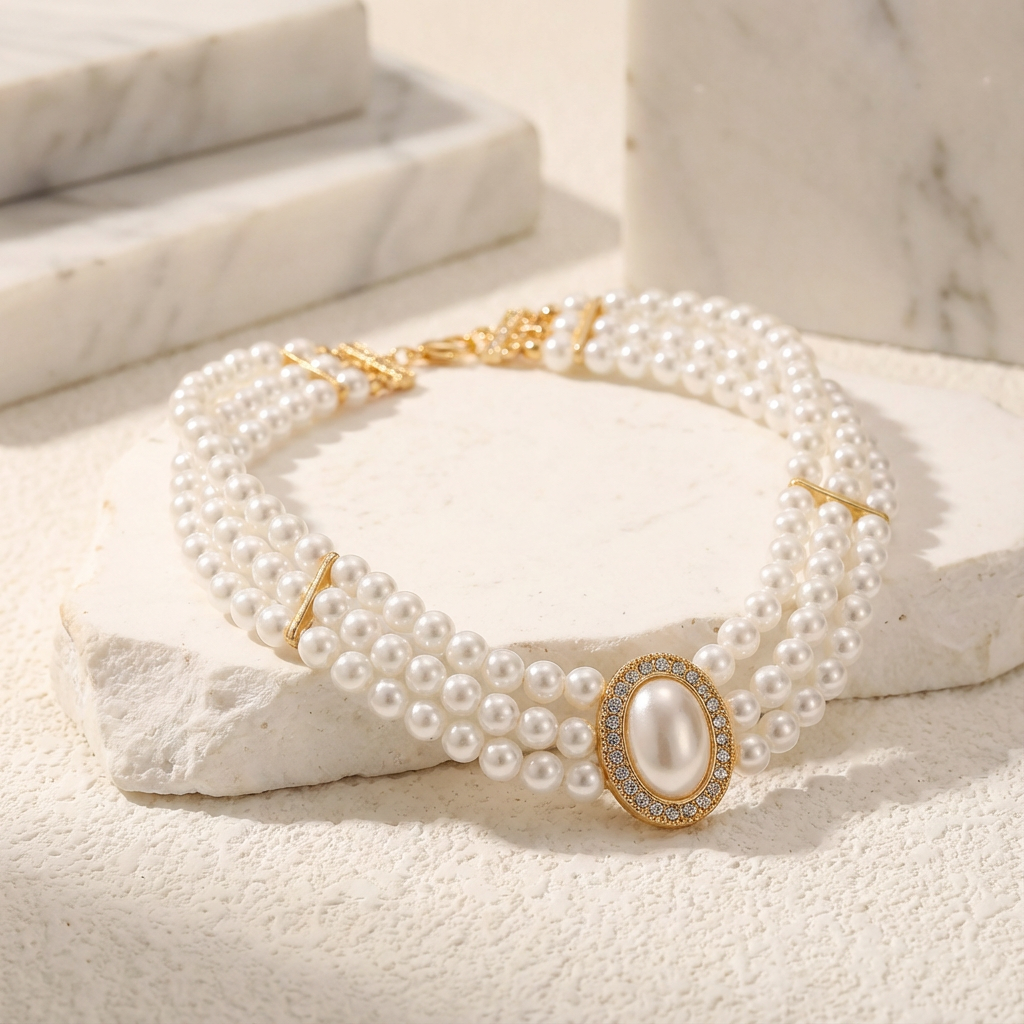 Turquoise Triple-Strand Choker Necklace